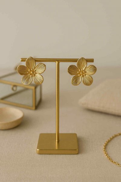 🌸 Boucles d’oreilles Kyoto – Fleur dorée